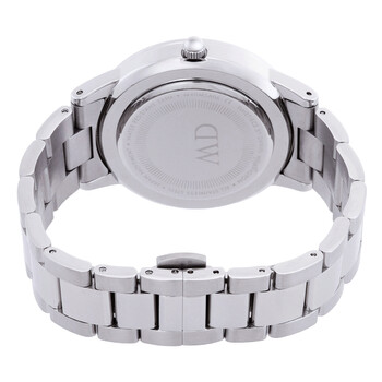 Silver-tone stainless steel case and bracelet. Fixed silver-tone stainless steel bezel. Blue dial with silver-tone hands and index hour markers. Dial Type: Analog. Quartz movement. Scratch resistant mineral crystal. Pull / push crown. Solid case back. Round case shape, case size: 40 mm. Band width: 20 mm. Fold over clasp with a safety release. Water resistant at 30 meters / 100 feet. Functions: hour, minute. Iconic Link Arctic Series. Casual watch style. Watch label: Japan Movt. Daniel Wellington Iconic Link Arctic Quartz Blue Dial Watch DW00100448.