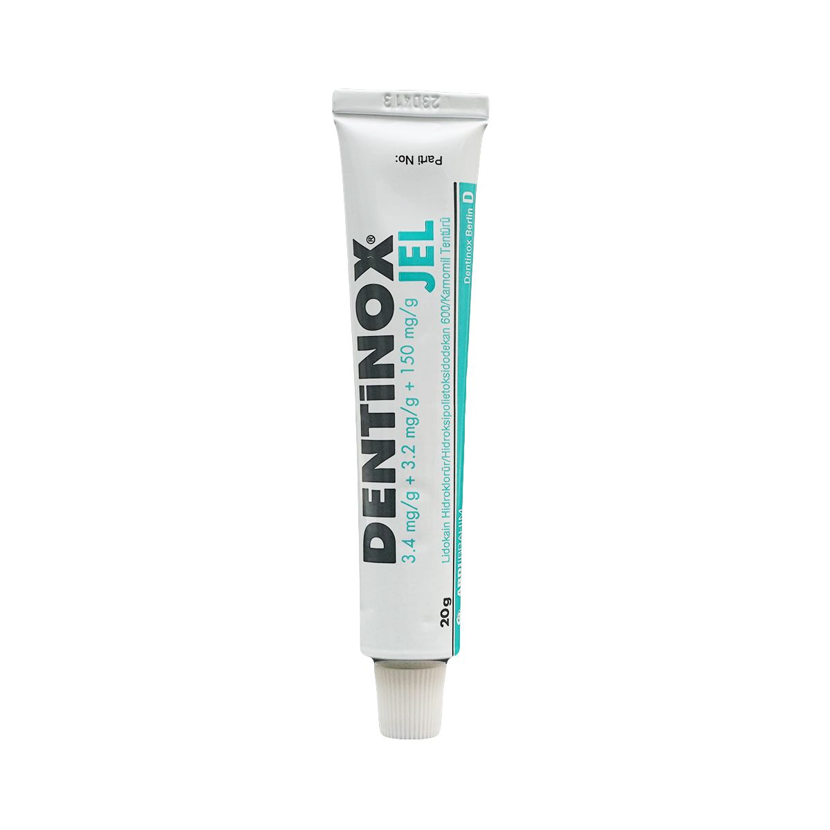დენტინოქსი შეიცავს ლიდოკაინის ჰიდროქსიდს, ჰიდროქსიპოლიეთილდოდეკან 600-ს და გვირილის ნაყენს აქტიური ნივთიერებების სახით.