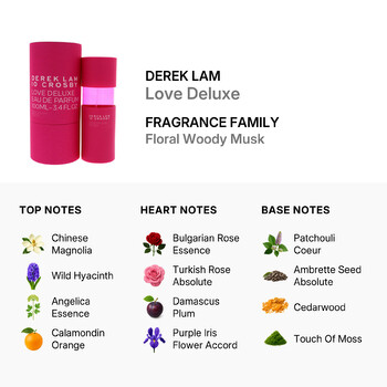 The journey of Love Deluxe begins with an enchanting blend of top notes, featuring the delicate Chinese magnolia, the wild allure of hyacinth, the pure essence of angelica, and the zesty touch of calamondin orange. This captivating introduction sets the stage for a heart filled with the luxurious scents of Bulgarian and Turkish roses, intermingled with the exotic sweetness of Damascus plum and the refined elegance of purple iris flower accord. The base notes of Love Deluxe provide a lasting impression, with the earthy richness of patchouli coeur, the warmth of ambrette seed absolute, the robustness of cedarwood, a gentle touch of moss, and the subtle sweetness of meliotus.