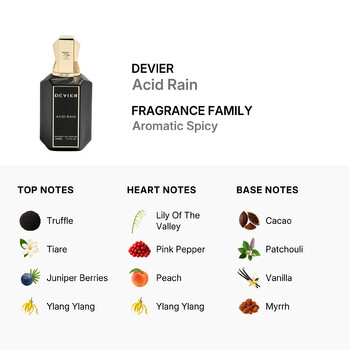 Size: 2.7 oz | Scent Name: Acid Rain | Brand: Devier | Category: Fragrance | Type: Extrait de Parfum Spray | Gender: Unisex | Barcode: 7709755755922