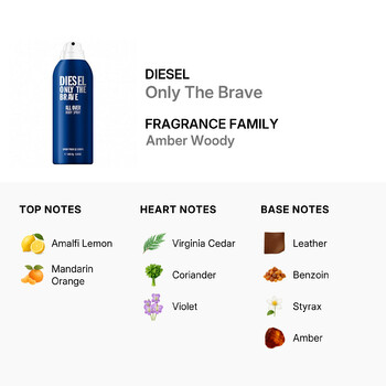 Unleash your inner confidence with Diesel Only The Brave Body Spray for Men, a bold and invigorating fragrance crafted for those who dare to stand strong. Launched in 2009 by the iconic Italian fashion house Diesel, this 5.8 oz body spray is a celebration of courage, strength, and determination. Designed to leave a lasting impression, it belongs to the Amber Woody fragrance family, blending powerful notes to create a scent that’s both daring and unforgettable.