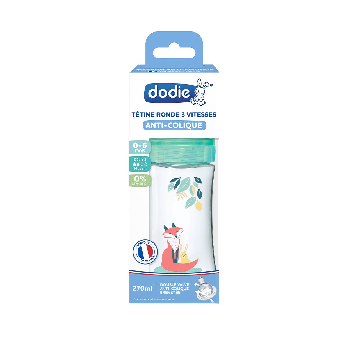 დოძიე - ანტიკოლიკური ბოთლი. Initiation+,RABIT FOX, 0-6 თვე, 270მლ, ნაკადი 2. ორმაგი სარქველის წყალობით უზრუნველყოფს ჰაერის ნაკადის სწორ მიწოდებას. 3 სიჩქარიანი ნაკადი უზრველყოფს ბავშვის წოვასთან მაქსიმალურ ადაპტაციას.