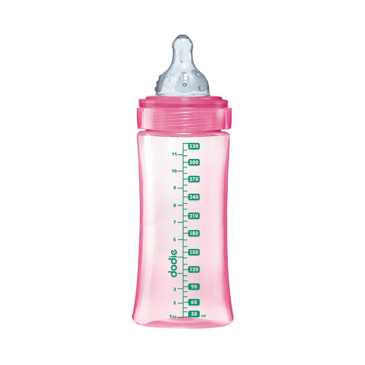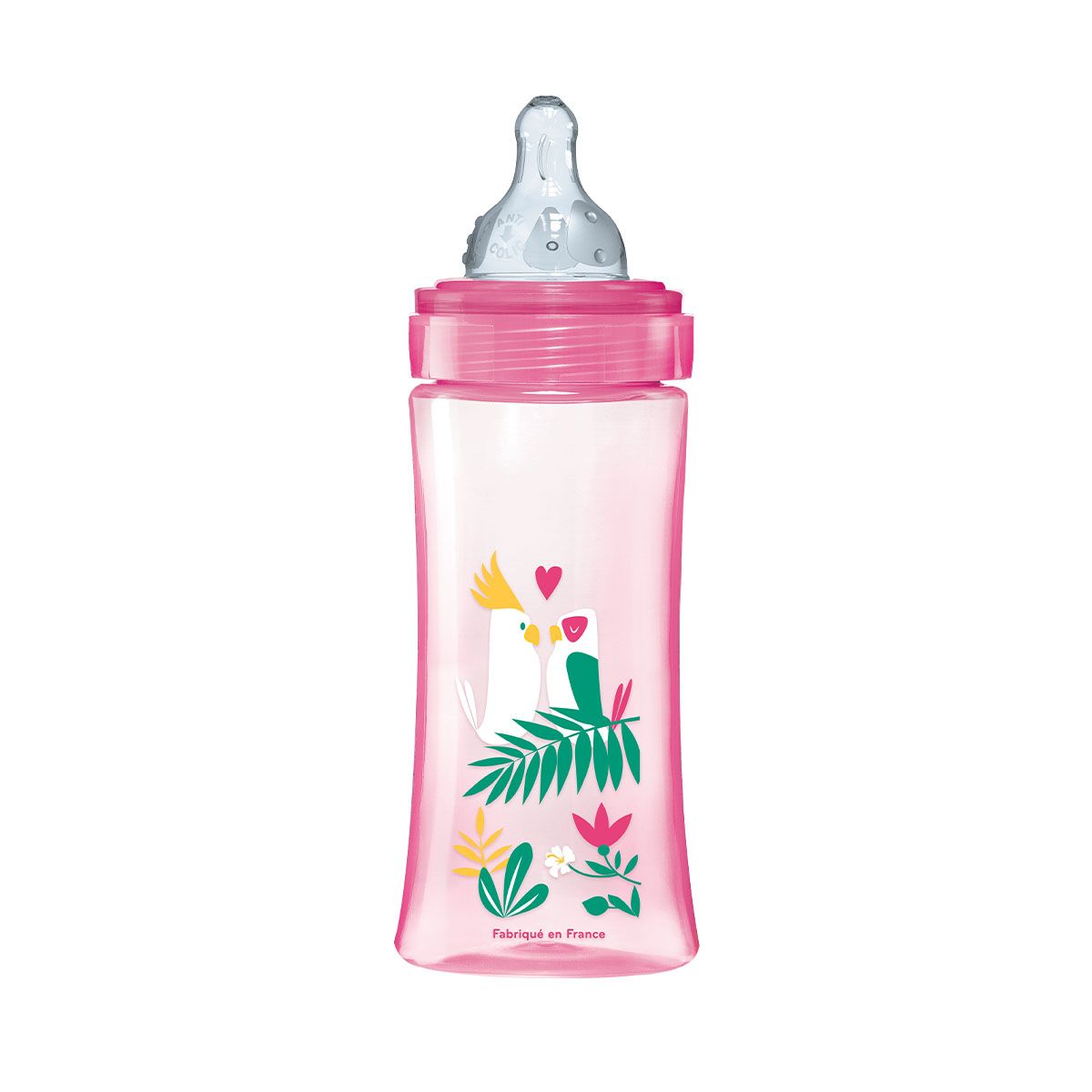 დოძიე - ანტიკოლიკური ბოთლი. Initation+, PINK JUNGLE, 6+ თვე, 330 მლ, ნაკადი 3. ორმაგი სარქველის წყალობით უზრუნველყოფს ჰაერის ნაკადის სწორ მიწოდებას. 3 სიჩქარიანი ნაკადი უზრველყოფს ბავშვის წოვასთან მაქსიმალურ ადაპტაციას.