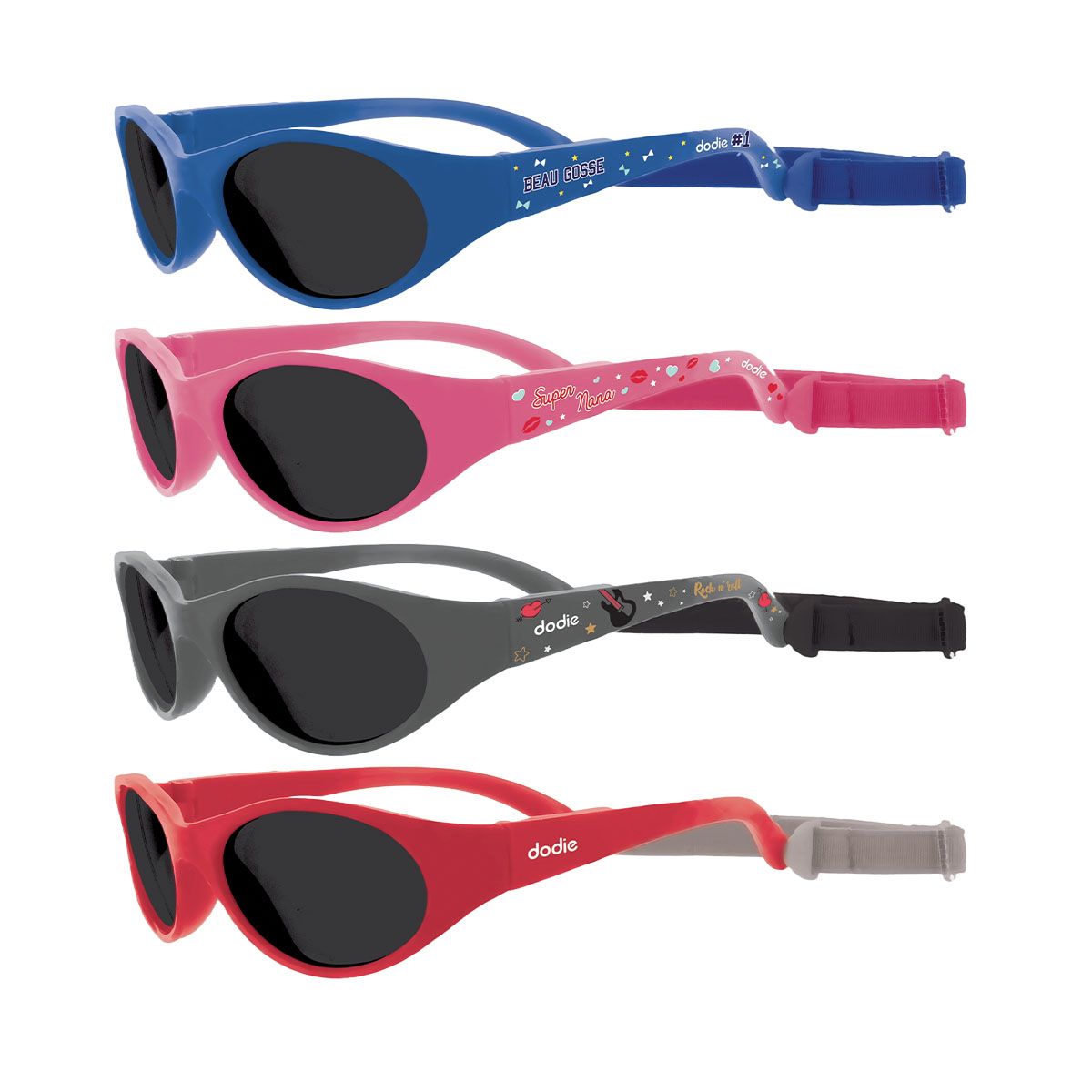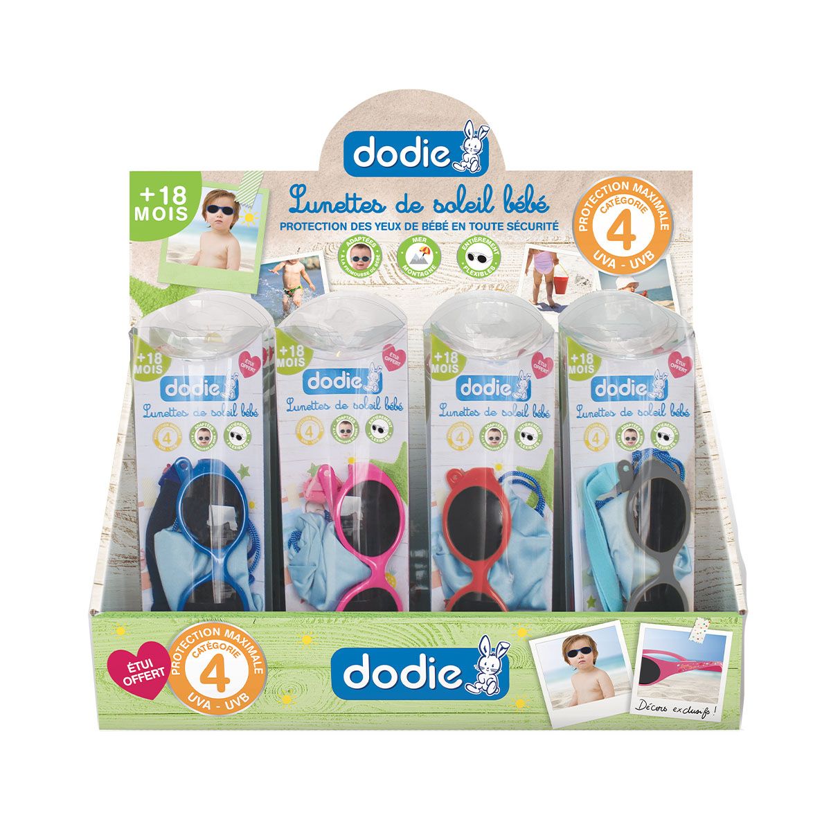 დოძიე-მზის სათვალე 18+ თვე. უზრუნველყოფს მაქსიმალურ დაცვას მზის მავნე ულტრაიისფერი სხივებისგან, კატეგორია 4 (UV 400). აქვს ელასტიური კორპუსი მეტი მდგრადობისთვის.