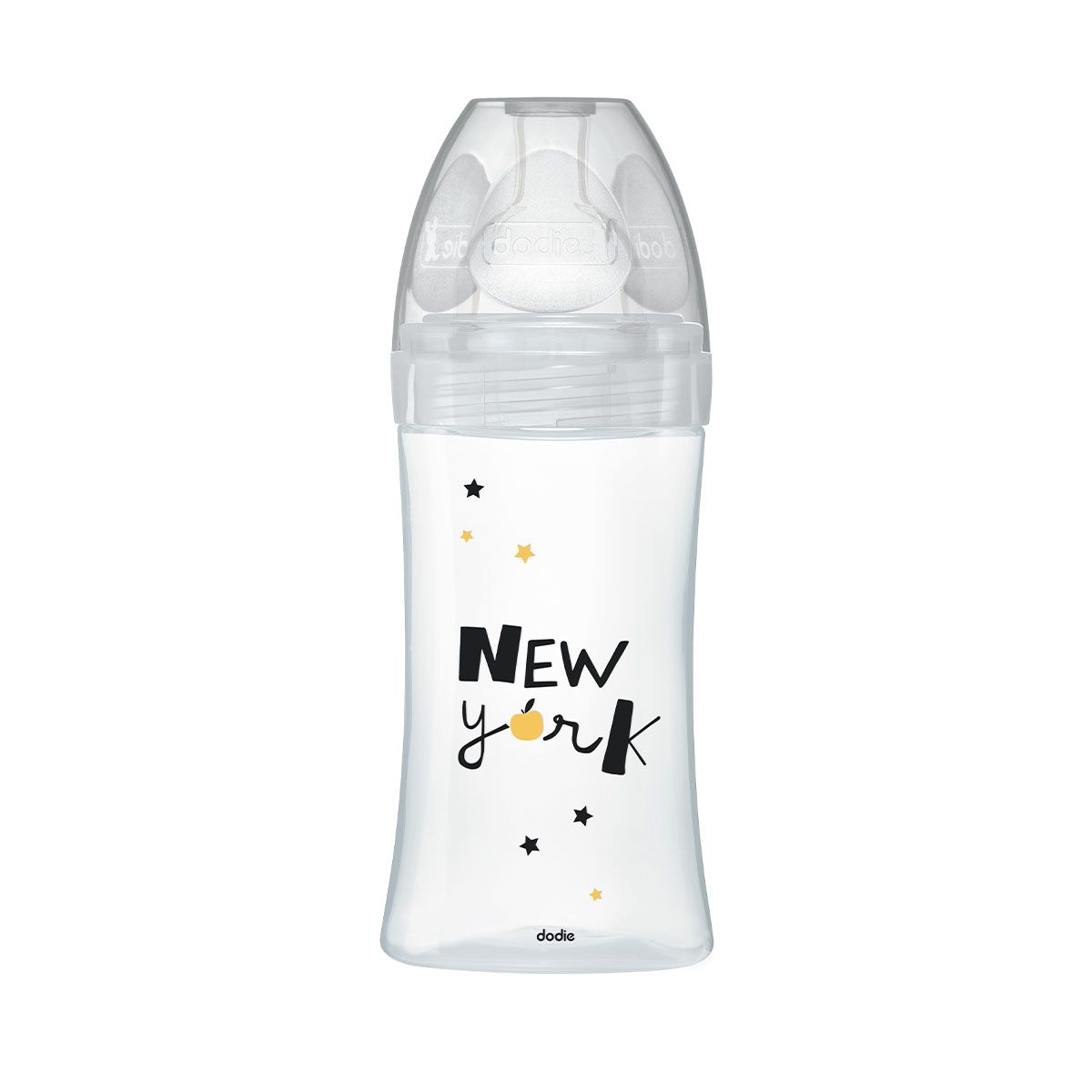 დოძიე - ანტიკოლიკური შუშის ბოთლი. Sensation+, NEW YORK, 0-6 თვე, 270მლ, ნაკადი 2. ორმაგი სარქველის წყალობით უზრუნველყოფს ჰაერის ნაკადის სწორ მიწოდებას. 3 სიჩქარიანი ნაკადი უზრველყოფს ბავშვის წოვასთან მაქსიმალურ ადაპტაციას.