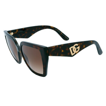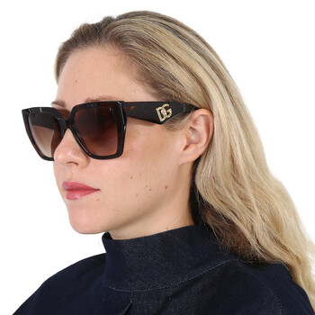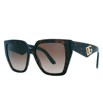 Dolce and Gabbana Sunglasses. Series number: DG4438. Color code: 502/13. Shape: Butterfly. Lens Width: 55 mm. Lens Bridge: 17 mm. Arm Length: 145 mm. 100% UV protection. Non-Polarized. Frame Material: Acetate. Frame Color: Havana. Lenses Type: Brown Gradient. Rim Style: Full-Rim. UPC/EAN code: 8056597844536. Dolce and Gabbana Brown Gradient Butterfly Ladies Sunglasses DG4438 502/13 55.