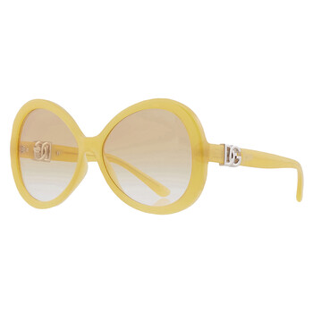 Dolce and Gabbana Sunglasses. Series number: DG6194U. Color code: 32832Q. Shape: Oval. Lens Width: 60 mm. Lens Bridge: 16 mm. Arm Length: 145 mm. 100% UV protection. Frame Material: Injected. Frame Color: Milky Yellow. Lenses Type: Clear Gradient Yellow. Rim Style: Full-Rim. UPC/EAN code: 8056597948913. Dolce and Gabbana Clear Gradient Yellow Oval Ladies Sunglasses DG6194U 32832Q 60.