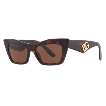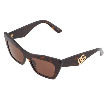 Dolce and Gabbana Sunglasses. Series number: DG4435. Color code: 502/73. Shape: Cat Eye. Lens Width: 53 mm. Lens Bridge: 18 mm. Arm Length: 145 mm. 100% UV protection. Non-Polarized. Frame Material: Acetate. Frame Color: Havana. Lenses Type: Dark Brown. Rim Style: Full-Rim. UPC/EAN code: 8056597840873. Dolce and Gabbana Dark Brown Cat Eye Ladies Sunglasses DG4435 502/73 53.