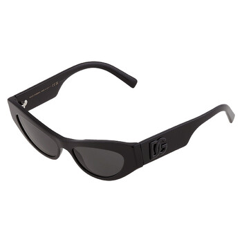 Dolce and Gabbana Sunglasses. Series number: DG4450. Color code: 501/87. Shape: Cat Eye. Lens Width: 52 mm. Lens Bridge: 16 mm. Arm Length: 145 mm. 100% UV protection. Non-Polarized. Frame Material: Plastic. Frame Color: Black. Lenses Type: Dark Grey. Rim Style: Full-Rim. UPC/EAN code: 8056597947923. Dolce and Gabbana Dark Grey Cat Eye Ladies Sunglasses DG4450 501/87 52.