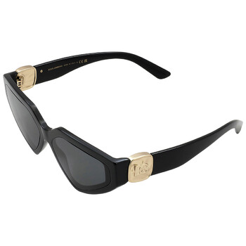 Dolce and Gabbana Sunglasses. Series number: DG4469. Color code: 501/87. Shape: Cat Eye. Lens Width: 59 mm. Lens Bridge: 15 mm. Arm Length: 145 mm. 100% UV protection. Non-Polarized. Frame Material: Acetate. Frame Color: Black. Lenses Type: Dark Grey. Rim Style: Full-Rim. UPC/EAN code: 8056262056417. Dolce and Gabbana Dark Grey Cat Eye Ladies Sunglasses DG4469 501/87 59.