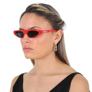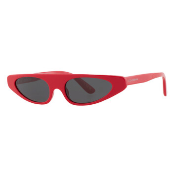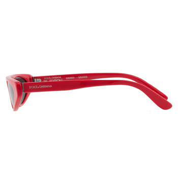 Dolce and Gabbana Sunglasses. Series number: DG4442. Color code: 30888752. Shape: Irregular. Lens Width: 52 mm. Lens Bridge: 17 mm. Arm Length: 140 mm. 100% UV protection. Non-Polarized. Frame Material: Acetate. Frame Color: Red. Lenses Type: Dark Grey. Rim Style: Full-Rim. UPC/EAN code: 8056597852982. Dolce and Gabbana Dark Grey Irregular Ladies Sunglasses DG4442 308887 52.