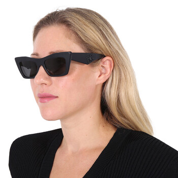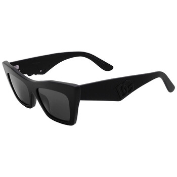 Dolce and Gabbana Sunglasses. Series number: DG4435. Color code: 25256G. Shape: Cat Eye. Lens Width: 53 mm. Lens Bridge: 18 mm. Arm Length: 145 mm. 100% UV protection. Non-Polarized. Frame Material: Acetate. Frame Color: Matte Black. Lenses Type: Dark Grey Mirrored. Rim Style: Full-Rim. UPC/EAN code: 8056597840842. Dolce and Gabbana Dark Grey Mirrored Cat Eye Ladies Sunglasses DG4435 25256G 53.