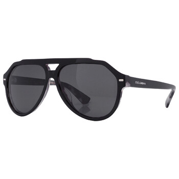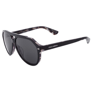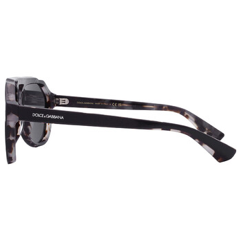 Dolce and Gabbana Sunglasses. Series number: DG4452F. Color code: 340387. Shape: Oversized. Lens Width: 60 mm. Lens Bridge: 13 mm. Arm Length: 145 mm. 100% UV protection. Non-Polarized. Frame Material: Acetate. Frame Color: Black on Grey Havana. Lenses Type: Dark Grey. Rim Style: Full-Rim. UPC/EAN code: 8056597963312. Dolce and Gabbana Dark Grey Oversized Men's Sunglasses DG4452F 340387 60.