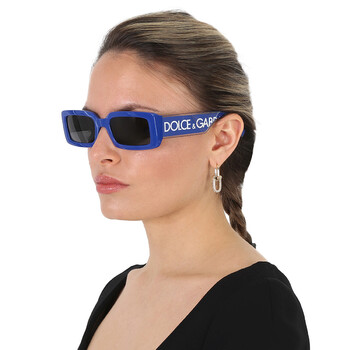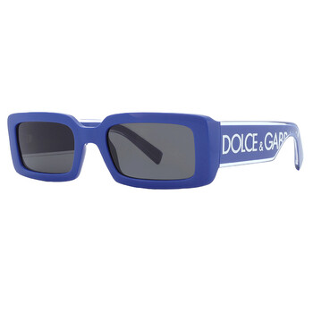 Dolce and Gabbana Sunglasses. Series number: DG6187. Color code: 309487. Shape: Rectangular. Lens Width: 53 mm. Lens Bridge: 20 mm. Arm Length: 145 mm. 100% UV protection. Frame Material: Injected. Frame Color: Blue. Lenses Type: Dark Grey. Rim Style: Full-Rim. UPC/EAN code: 8056597960571. Dolce and Gabbana Dark Grey Rectangular Ladies Sunglasses DG6187 309487 53.