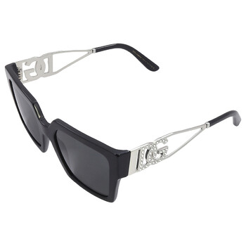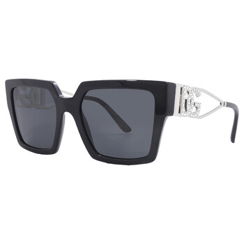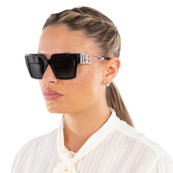 Dolce and Gabbana Sunglasses. Series number: DG4446B. Color code: 501/87. Shape: Square. Lens Width: 53 mm. Lens Bridge: 19 mm. Arm Length: 145 mm. 100% UV protection. Non-Polarized. Frame Material: Acetate;Metal. Frame Color: Black/Silver. Lenses Type: Dark Grey. Rim Style: Full-Rim. UPC/EAN code: 8056597946674. Dolce and Gabbana Dark Grey Square Ladies Sunglasses DG4446B 501/87 53.
