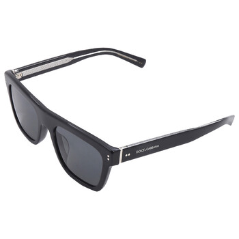 Dolce and Gabbana Sunglasses. Series number: DG4420F. Color code: 501/87. Shape: Square. Lens Width: 52 mm. Lens Bridge: 20 mm. Arm Length: 145 mm. 100% UV protection. Non-Polarized. Frame Material: Acetate. Frame Color: Black. Lenses Type: Dark Grey. Rim Style: Full-Rim. UPC/EAN code: 8056597769341. Dolce and Gabbana Dark Grey Square Men's Sunglasses DG4420F 501/87 52.