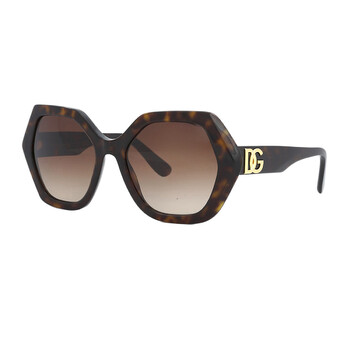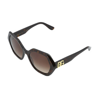 Dolce and Gabbana Sunglasses. Series number: DG4406. Color code: 502/13. Shape: Irregular. Lens Width: 54 mm. Lens Bridge: 19 mm. Arm Length: 140 mm. 100% UV protection. Non-Polarized. Frame Material: Plastic. Frame Color: Havana. Lenses Type: Gradient Brown. Rim Style: Full-Rim. UPC/EAN code: 8056597647717. Dolce and Gabbana Gradient Brown Irregular Ladies Sunglasses DG4406 502/13 54.