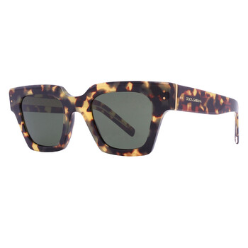 Dolce and Gabbana Sunglasses. Series number: DG4413. Color code: 33755248. Shape: Square. Lens Width: 48 mm. Lens Bridge: 23 mm. Arm Length: 145 mm. 100% UV protection. Non-Polarized. Frame Material: Plastic. Frame Color: Yellow Havana. Lenses Type: Green. Rim Style: Full-Rim. UPC/EAN code: 8056597713566. Dolce and Gabbana Green Square Men's Sunglasses DG4413 337552 48.