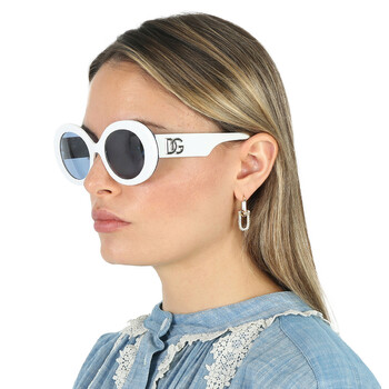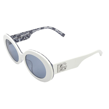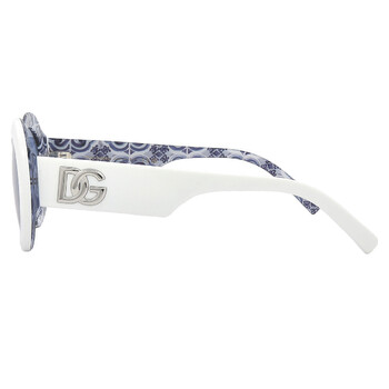 Dolce and Gabbana Sunglasses. Series number: DG4448F. Color code: 337155. Shape: Oval. Lens Width: 51 mm. Lens Bridge: 20 mm. Arm Length: 145 mm. 100% UV protection. Non-Polarized. Frame Material: Acetate. Frame Color: White On Blue Maiolica. Lenses Type: Light Blue Mirrored Silver. Rim Style: Full-Rim. UPC/EAN code: 8056597963152. Dolce and Gabbana Light Blue Mirrored Silver Oval Ladies Sunglasses DG4448F 337155 51.