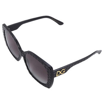 Dolce And Gabbana Sunglasses. Series number: DG4385. Color code: 32888G. Shape: Square. Lens Width: 58 mm. Lens Bridge: 18 mm. Arm Length: 145 mm. 100% UV protection. Non-Polarized. Frame Material: Plastic. Frame Color: Black Texture Cocco. Lenses Type: Light Gray Gradient Black. Rim Style: Full-Rim. UPC/EAN code: 8056597366946. Dolce And Gabbana Light Gray Gradient Black Square Ladies Sunglasses DG4385 32888G 58.
