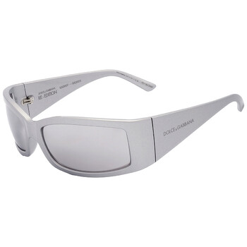 Dolce and Gabbana Sunglasses. Series number: DG6188. Color code: 34156G61. Shape: Wrap. Lens Width: 61 mm. Lens Bridge: 17 mm. Arm Length: 125 mm. 100% UV protection. Non-Polarized. Frame Material: Plastic. Frame Color: Metallic Grey. Lenses Type: Light Grey Mirror Silver. Rim Style: Full-Rim. UPC/EAN code: 8056597898218. Dolce and Gabbana Light Grey Mirror Silver Wrap Unisex Sunglasses DG6188 34156G 61.