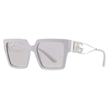 Dolce and Gabbana Sunglasses. Series number: DG4446B. Color code: 341887. Shape: Square. Lens Width: 53 mm. Lens Bridge: 19 mm. Arm Length: 145 mm. 100% UV protection. Non-Polarized. Frame Material: Acetate;Metal. Frame Color: Light Grey/Silver. Lenses Type: Light Grey. Rim Style: Full-Rim. UPC/EAN code: 8056597946650. Dolce and Gabbana Light Grey Square Ladies Sunglasses DG4446B 341887 53.