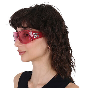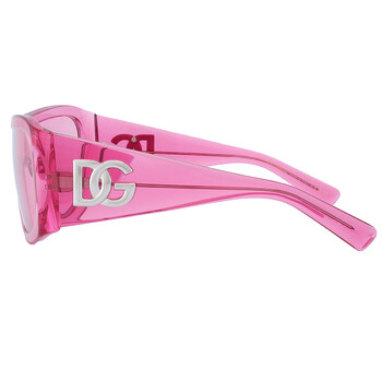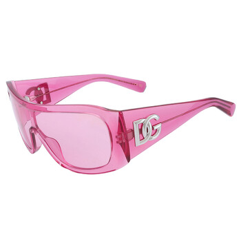 Dolce and Gabbana Sunglasses. Series number: DG4454. Color code: 314884. Shape: Shield. Lens Width: 30 mm. Lens Bridge: 0 mm. Arm Length: 130 mm. 100% UV protection. Non-Polarized. Frame Material: Acetate. Frame Color: Transparent Pink. Lenses Type: Pink. Rim Style: Full-Rim. UPC/EAN code: 8056597945998. Dolce and Gabbana Pink Shield Unisex Sunglasses DG4454 314884 30.