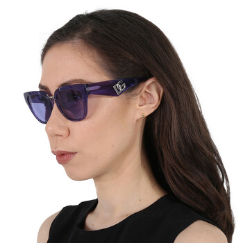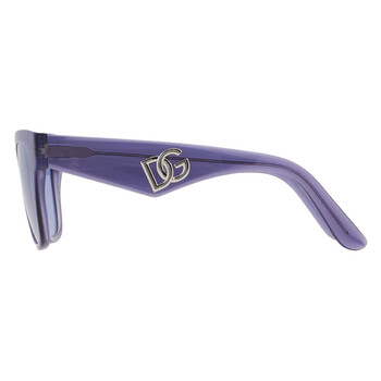Dolce and Gabbana Sunglasses. Series number: DG4437. Color code: 34071A. Shape: Butterfly. Lens Width: 51 mm. Lens Bridge: 20 mm. Arm Length: 145 mm. 100% UV protection. Non-Polarized. Frame Material: Acetate. Frame Color: Transparent Fleur Purple. Lenses Type: Violet. Rim Style: Full-Rim. UPC/EAN code: 8056597844468. Dolce and Gabbana Violet Butterfly Ladies Sunglasses DG4437 34071A 51.