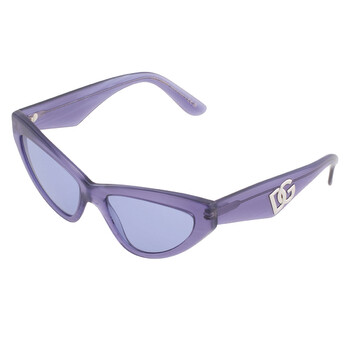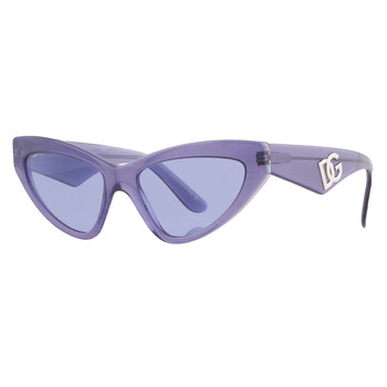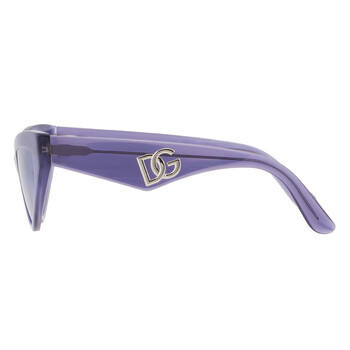 Dolce and Gabbana Sunglasses. Series number: DG4439. Color code: 34071A. Shape: Cat Eye. Lens Width: 55 mm. Lens Bridge: 18 mm. Arm Length: 145 mm. 100% UV protection. Non-Polarized. Frame Material: Acetate. Frame Color: Transparent Fleur Purple. Lenses Type: Violet. Rim Style: Full-Rim. UPC/EAN code: 8056597844635. Dolce and Gabbana Violet Cat Eye Ladies Sunglasses DG4439 34071A 55.