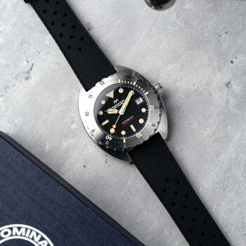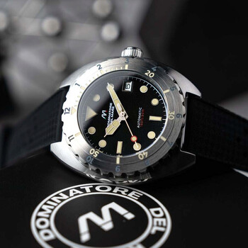 Experience the beauty of Amalfi with this masterfully crafted timepiece. inspired by the breathtaking landscape of the coastal town, this collection presents a bold cushion case shape with vibrant colour options. With Seiko NH35 automatic movement and unidirectional turning bezel, the Amalfi Automatic is energetic, stylish, and durable. Silver-tone stainless steel case with a black silicone strap. Uni-directional rotating silver-tone stainless steel bezel. Black dial with silver-tone hands and index hour markers. Minute markers around the outer rim. Dial Type: Analog. Luminescent hands and markers. Date display at the 3 o'clock position. Seiko - NH35 automatic movement. Scratch resistant mineral crystal. Pull / push crown. Solid case back. Round case shape, case size: 44 mm, case thickness: 14 mm. Band width: 20 mm, band length: 8 inches. Buckle clasp. Water resistant at 50 meters / 165 feet. Functions: date, hour, minute, second. Amalfi Series. Casual watch style. Dominatore Del Mare Amalfi Black Dial Men's Watch DD-8028-01.