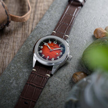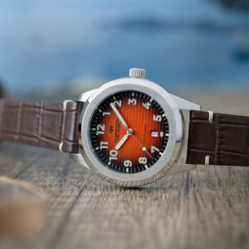This is the perfect watch to accompany you on any occasion. Crafted with a stainless steel case and bezel and featuring a Japanese quartz movement and date display, the Aqua Sicura is both elegant and precise. The finely crafted dial ensures it looks just as good in a formal setting as it does during casual occasions. Silver-tone stainless steel case with a brown leather strap. Fixed silver-tone stainless steel bezel. Orange dial with silver-tone hands and Arabic numeral hour markers. Minute markers around the outer rim. Dial Type: Analog. Luminescent hands and markers. Date display at the 6 o'clock position. Seiko - VJ32 quartz movement. Pull / push crown. Solid case back. Round case shape, case size: 42 mm, case thickness: 11 mm. Band width: 20 mm, band length: 8 inches. Water resistant at 50 meters / 165 feet. Functions: date, hour, minute, second. Aqua Sicura Series. Casual watch style. Dominatore Del Mare Aqua Sicura Quartz Orange Dial Men's Watch DD-8022-06.