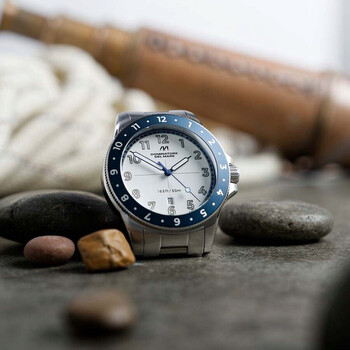 The Bandiera features a Japan Quartz movement with a date display, contained within a 42mm case diameter. Its unidirectional turning bezel adds a stylish touch, while its band provides comfortable and reliable wearing. Ideal for those who appreciate classic timepieces. Silver-tone stainless steel case and bracelet. Uni-directional rotating blue stainless steel bezel. White dial with blue hands and Arabic numeral hour markers. Minute markers around the outer rim. Dial Type: Analog. Luminescent hands and markers. Date display at the 6 o'clock position. Seiko - VJ32 quartz movement. Pull / push crown. Solid case back. Round case shape, case size: 42 mm, case thickness: 12.5 mm. Band width: 20 mm, band length: 8 inches. Fold over clasp with a safety release. Water resistant at 50 meters / 165 feet. Functions: date, hour, minute, second. Bandiera Series. Casual watch style. Dominatore Del Mare Bandiera Quartz White Dial Men's Watch DD-8020-66.