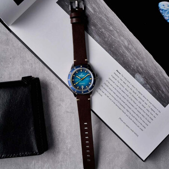 Take a piece of Tropea wherever you go with the Tropea Automatic. Featuring a Seiko NH35 automatic movement, this watch also pays tribute to the remarkable natural and historical landscape of Tropea. With a 42mm stainless steel case and 10 ATM water resistance, it's perfect for dressing up or enjoying water activities. Silver-tone stainless steel case with a brown leather strap. Uni-directional rotating blue stainless steel bezel. Blue dial with blue hands and index hour markers. Minute markers around the outer rim. Dial Type: Analog. Luminescent hands and markers. Date display at the 6 o'clock position. Seiko - NH35 automatic movement. Scratch resistant mineral crystal. Pull / push crown. Solid case back. Round case shape, case size: 42 mm, case thickness: 14 mm. Band width: 20 mm, band length: 8 inches. Buckle clasp. Water resistant at 100 meters / 330 feet. Functions: date, hour, minute, second. Tropea Series. Casual watch style. Dominatore Del Mare Tropea Blue Dial Men's Watch DD-8026-01.