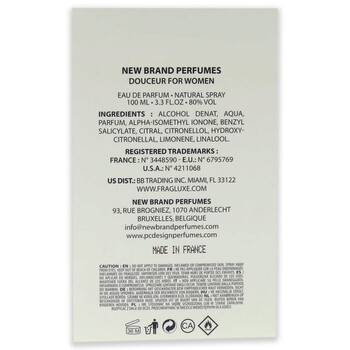 Brought to you by the design house of New Brand, Douceur is a testament to their commitment to quality and sophistication. This elegant perfume is more than just a fragrance; it is an experience that brings out your feminine charm and grace. Perfect for the stylish and confident woman, Douceur is the epitome of luxury and elegance.
