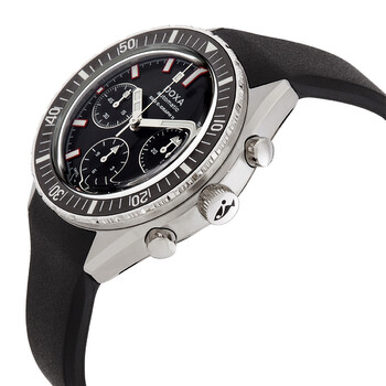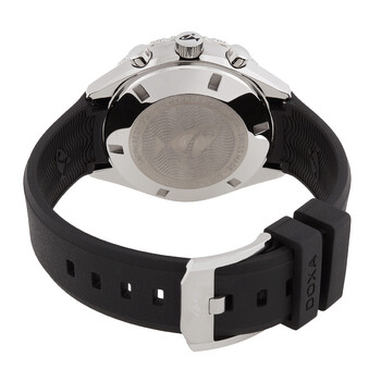 Silver-tone stainless steel case with a black leather strap. Uni-directional rotating black ceramic bezel. Black dial with silver-tone hands and index hour markers. Minute markers around the outer rim. Dial Type: Analog. Luminescent hands and markers. Chronograph - three sub-dials displaying: 60 second, 30 minute and 12 hour. Automatic movement with a 56-hour power reserve. Scratch resistant sapphire crystal. Screw down crown. Solid case back. Round case shape, case size: 42 mm. Buckle clasp. Water resistant at 200 meters / 660 feet. Functions: chronograph, hour, minute, second. Sub 200 C-graph II Series. Sport watch style. Watch label: Swiss Made. Doxa SUB 200 C-Graph II Chronograph Automatic Black Dial Men's Watch 797.10.101.20.