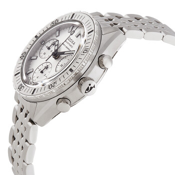 Silver-tone stainless steel case and bracelet. Uni-directional rotating silver-tone ceramic bezel. Silver dial with luminous hands and index hour markers. Minute markers around the outer rim. Dial Type: Analog. Luminescent hands and markers. Chronograph - three sub-dials displaying: 60 second, 30 minute and 12 hour. Automatic movement with a 56-hour power reserve. Scratch resistant sapphire crystal. Screw down crown. Solid case back. Round case shape, case size: 42 mm. Band width: 20 mm. Deployment with push button release clasp. Water resistant at 200 meters / 660 feet. Functions: chronograph, hour, minute, second. Sub 200 C-graph II Series. Sport watch style. Watch label: Swiss Made. Doxa SUB 200 C-GRAPH II Chronograph Automatic Silver Dial Men's Watch 797.10.011.10.
