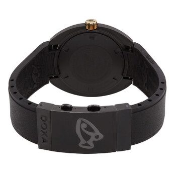 Black yellow gold & titanium case with a black rubber strap. Uni-directional rotating black ceramic bezel. Black dial with gold-tone hands and index hour markers. Minute markers around the outer rim. Dial Type: Analog. Luminescent hands and markers. Automatic movement. Scratch resistant sapphire crystal. Screw down crown. Solid case back. Round case shape, case size: 44.5 mm, case thickness: 11.95 mm. Band width: 20 mm. Folding clasp. Water resistant at 300 meters / 1000 feet. Functions: hour, minute, second. Sub 300 Beta Sharkhunter Series. Sport watch style. Watch label: Swiss Made. Doxa SUB 300 Beta Sharkhunter Automatic Black Dial Men's Watch 830.20.101ND.20.
