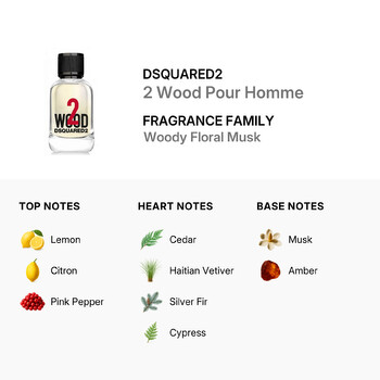 Designed by the esteemed house of Dsquared2, 2 Wood Pour Homme is more than just a fragrance; it's a statement of identity for the discerning gentleman. It's an invitation to explore the depths of your personality, with each layer revealing a facet of your character. Whether it's the fresh zest of its opening notes, the steadfast heart of its woodsy core, or the seductive base that lingers, 2 Wood Pour Homme is a testament to the complex nature of masculinity.