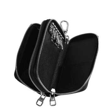 Dunhill Men's Key Case. SKU: DU23R2488GS001. Color: Black. Size: 12cm x 7cm x 3.5 cm. Dunhill Duke Fine Leather Coin Purse. This coin purse features a double zip-around closure, six key hooks and a claw clip, a zip coin purse with a gusset, two slip pockets, palladium-plated hardware, and Dunhill branding. 100% Goat leather. Made in Italy.