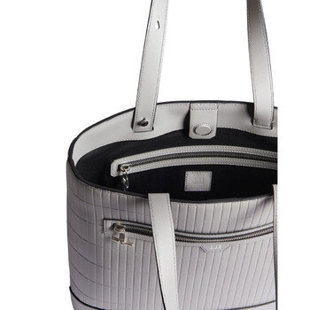 Dunhill Men's Tote. SKU: DU23R3555RA030. Color: Grey. Size: 38cm x 35cm x 8cm. Dunhill T-Bar Zip Rollagas Tote. This tote features adjustable top handles, an exterior zipped pocket with a T-bar zip puller, one interior zipped pocket, vintage palladium-plated hardware, and Dunhill branding. 100% calf leather. Made in Italy.