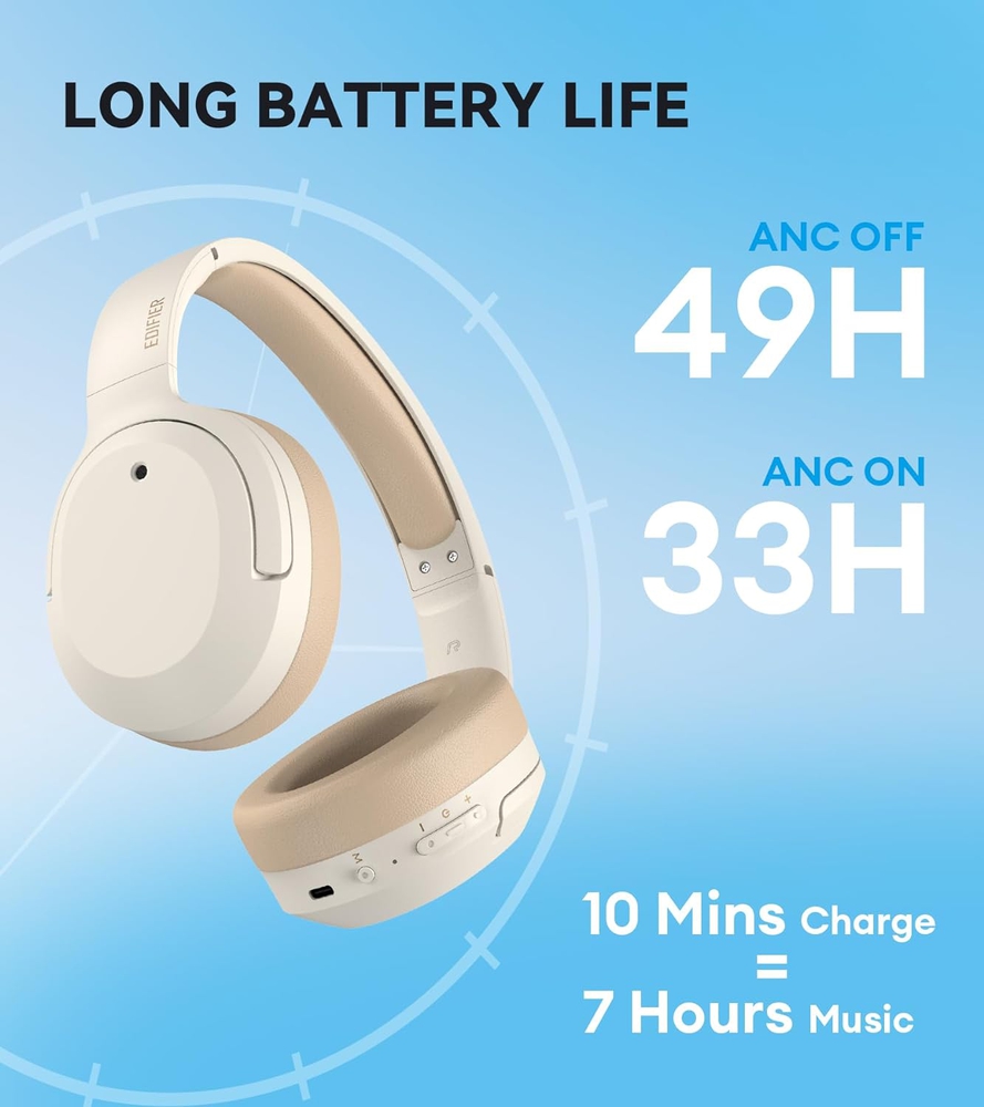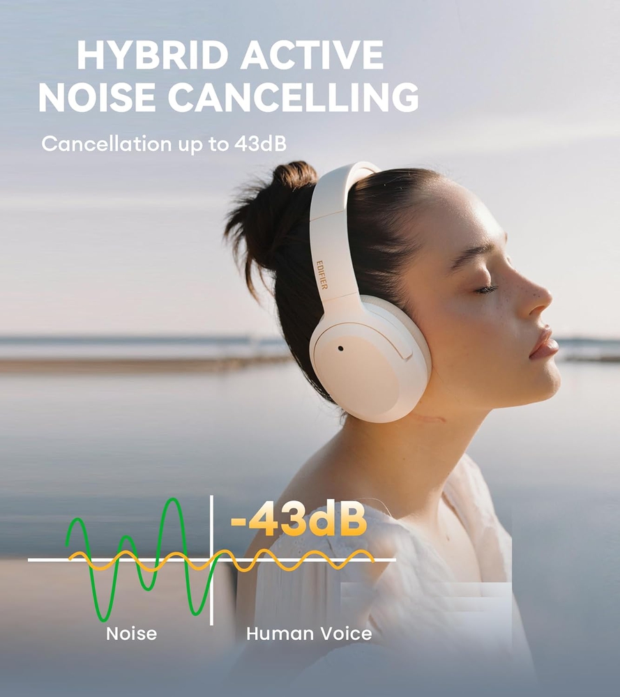 Edifier W820NB Plus Wireless Noise Cancellation Over-Ear Headphones Ivory