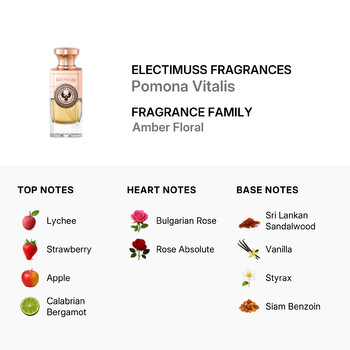 Step into a world of bold elegance with Pomona Vitalis by Electimuss Fragrances. Launched in 2022, this unisex parfum blends rich, radiant ingredients into a scent that’s both modern and timeless. As part of the Amber Floral fragrance family, Pomona Vitalis delivers a luxurious experience crafted by the niche British perfume house, Electimuss Fragrances — known for their expert craftsmanship and high-quality ingredients.