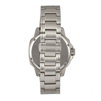 Stainless Steel Band and Case Japanese Quartz Movement Non-Glare Scratch-Resistant Mineral Crystal Logo-Engraved Stainless Steel Caseback Crown Protector Case Design Tapered Stainless Steel Bracelet Logo-Engraved Stainless Steel Butterfly Clasp Luminous Hands Date Display 45mm Case Diameter 5ATM Water Resistance