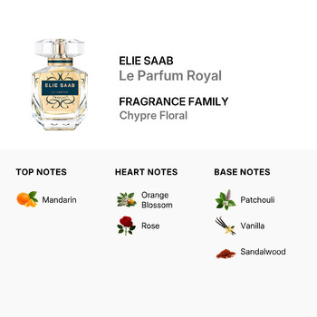 Le Parfum Royal opens with a lively burst of Mandarin, an invigorating top note that instantly captivates the senses. As the fragrance unfolds, a delicate heart of Orange blossom and Rose emerges, adding a touch of floral sweetness that's irresistible. The perfume concludes with sumptuous base notes of Patchouli, Vanilla, and Sandalwood, creating a warm, comforting aroma that lingers beautifully.