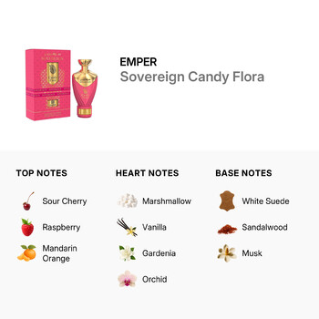 Discover the sweet and sophisticated charm of Emper Sovereign Candy Flora, a luxurious Eau de Parfum crafted exclusively for ladies. Made by the renowned Middle Eastern fragrance house, Emper, based in the United Arab Emirates, this 3.4 oz spray combines elegance and allure in every spritz. Sovereign Candy Flora is a beautifully balanced scent designed to make a statement—perfect for both everyday wear and special moments.