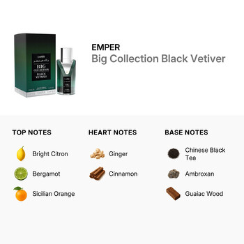 Big Collection Black Vetiver opens with a powerful burst of earthy and woody notes, creating a warm and masculine aura. The scent evolves into a smooth and refined finish, making it perfect for both daytime wear and evening occasions. Whether you're heading to a business meeting or a night out, this fragrance leaves a lasting impression without being overpowering.