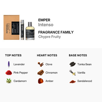 The Emper Intenso Gift Set includes a full-size 3.4 oz Eau de Parfum and a convenient 20 ml travel spray, offering both elegance and versatility. Whether you're heading to a formal event or a casual day out, this fragrance keeps up with your every move. Its deeply masculine aroma combines warm, aromatic notes that leave a lasting impression, making it an ideal signature scent.