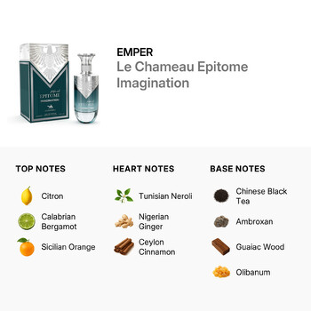 Discover the bold and captivating scent of Emper's Le Chameau Epitome Imagination for men. Designed by the renowned Middle Eastern fragrance house Emper, this Eau de Parfum spray brings a modern twist to classic masculinity. Made in the United Arab Emirates, this 3.4 oz fragrance blends elegance with a daring spirit, making it the perfect signature scent for the confident man.