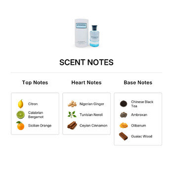 The base notes provide a deep and lasting impression, combining the smooth essence of Chinese black tea, the modern warmth of ambroxan, smoky olibanum, and earthy guaiac wood. This unique composition creates a scent that lingers gracefully throughout the day, making it ideal for any occasion.