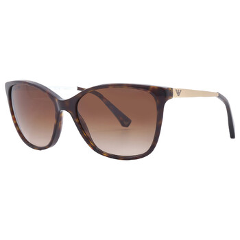 Emporio Armani Sunglasses. Series number: AR4025. Color code: 502613. Shape: Cat Eye. Lens Width: 55 mm. Lens Bridge: 17 mm. Arm Length: 140 mm. 100% UV protection. Non-Polarized. Frame Material: Plastic. Frame Color: Dark Havana. Lenses Type: Brown Gradient. Rim Style: Full-Rim. UPC/EAN code: 8053672210118. Emporio Armani Brown Gradient Cat Eye Ladies Sunglasses EA4025 502613 55.